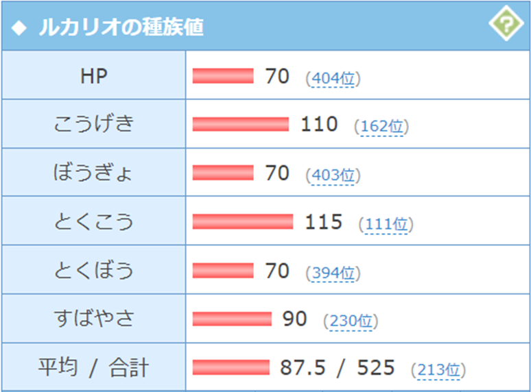 加えて、ルカリオは全体的にピカチュウより種族値が高いこともわかります。