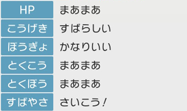 この機能では各個体値を以下のように表示しています。
