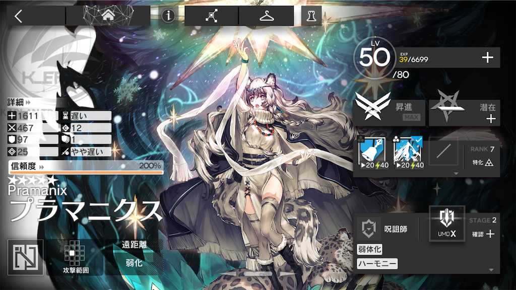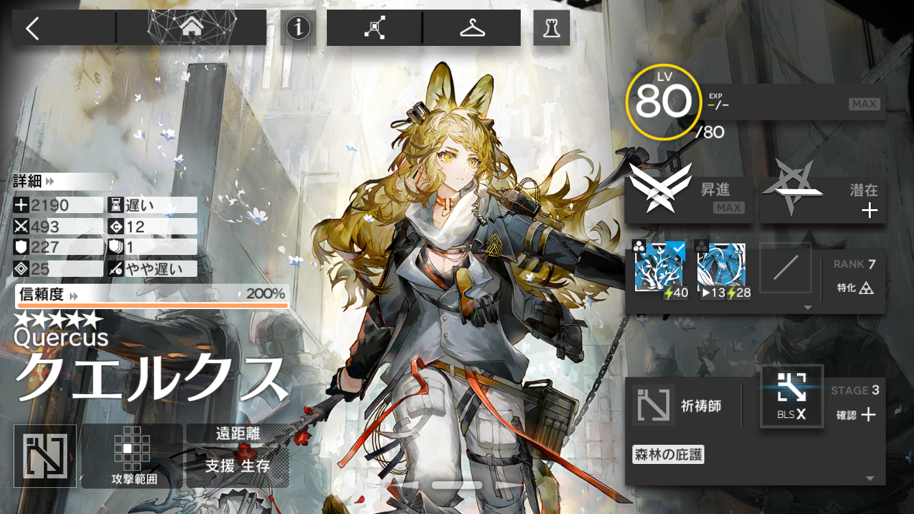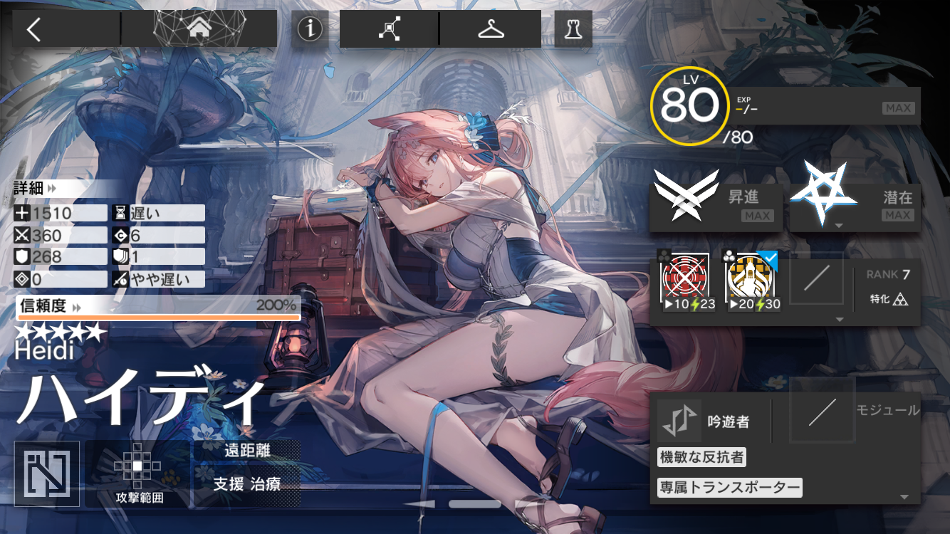 そして何より医療オペレーター含む全オペレーター中トップクラスの回復力を誇り、中途半端な性能ではなく完全なる医療オペレーターとして信頼して使うことができるため、是非とも育成してみてください。