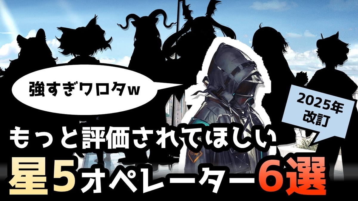 本記事は、アークナイツ無課金勢である筆者が「なんでこんな強いのに、どこのおすすめランキングでも紹介されてないの?」と思うような強力星5オペレーターを紹介しております。