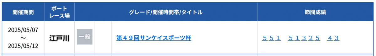 江戸川 一般戦(2025/05/07水~2025/05/12月)